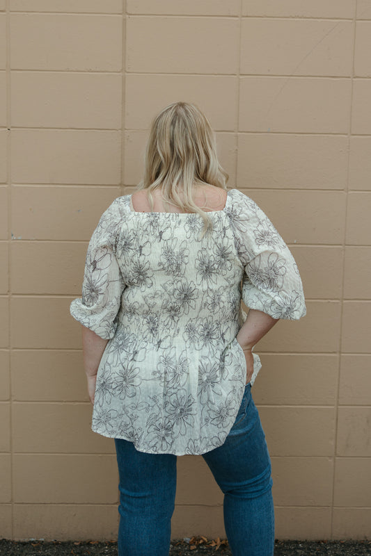 Grey Floral Smocked Top