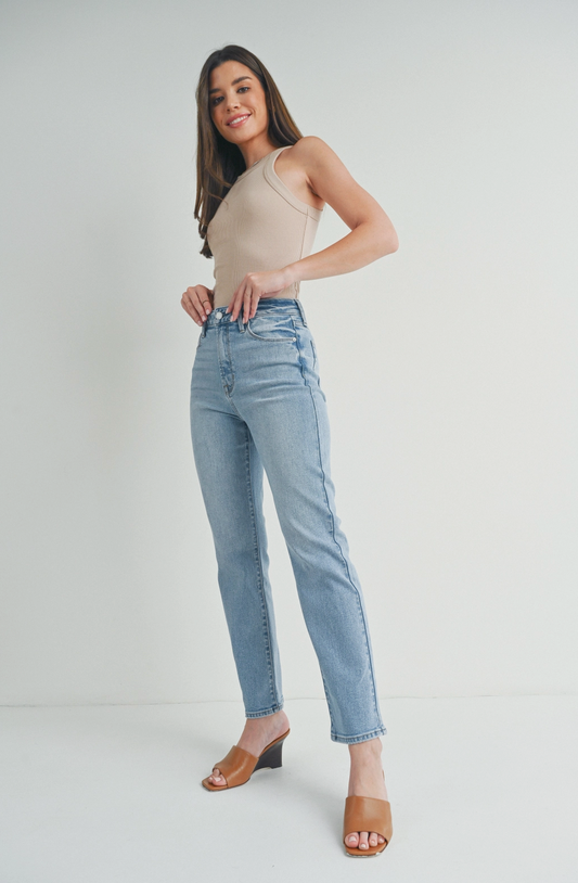 High Rise Light Denim Straight Jean