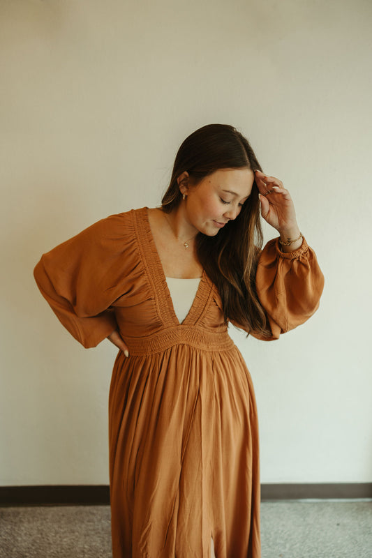 Sold outPlunge V Neck Maxi Dress in Camel