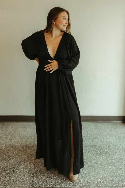 Sold outPlunge V Neck Maxi Dress in Black