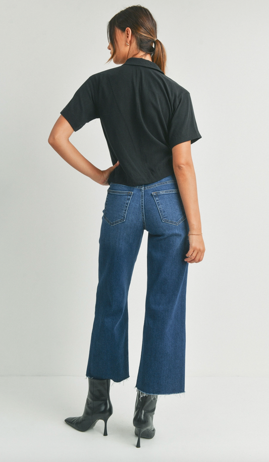 Detail Waistband Wide Leg Jeans