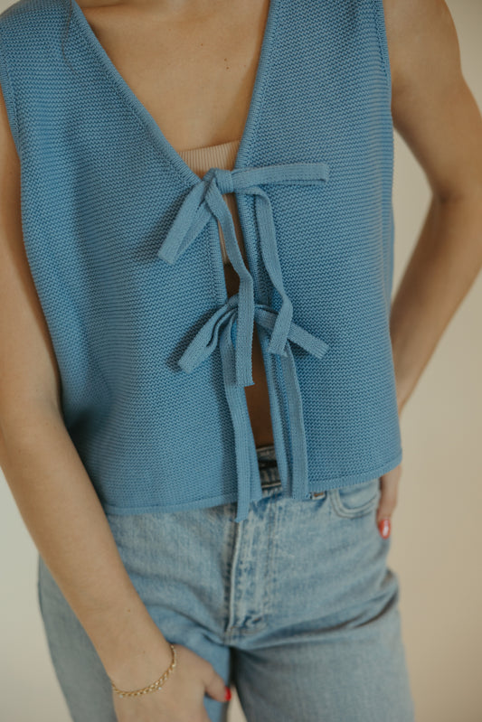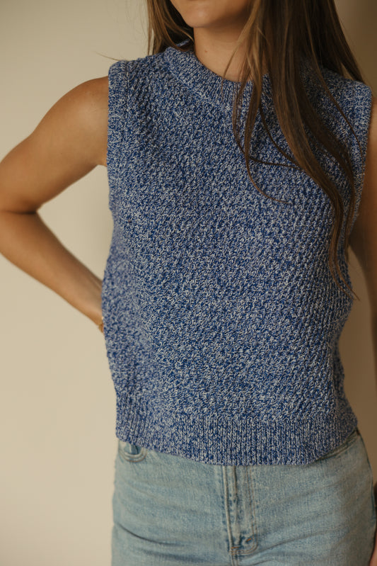 Sleeveless Crew Sweater in Blue