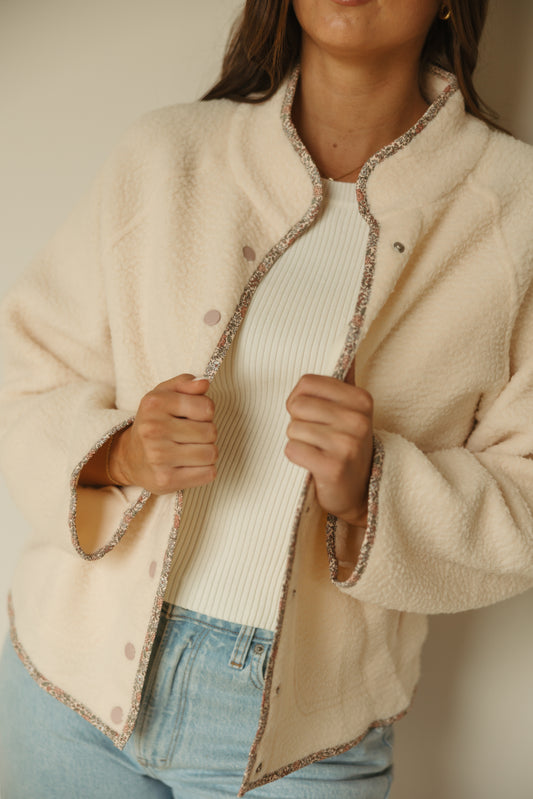 Pink Floral Trim Sherpa Jacket