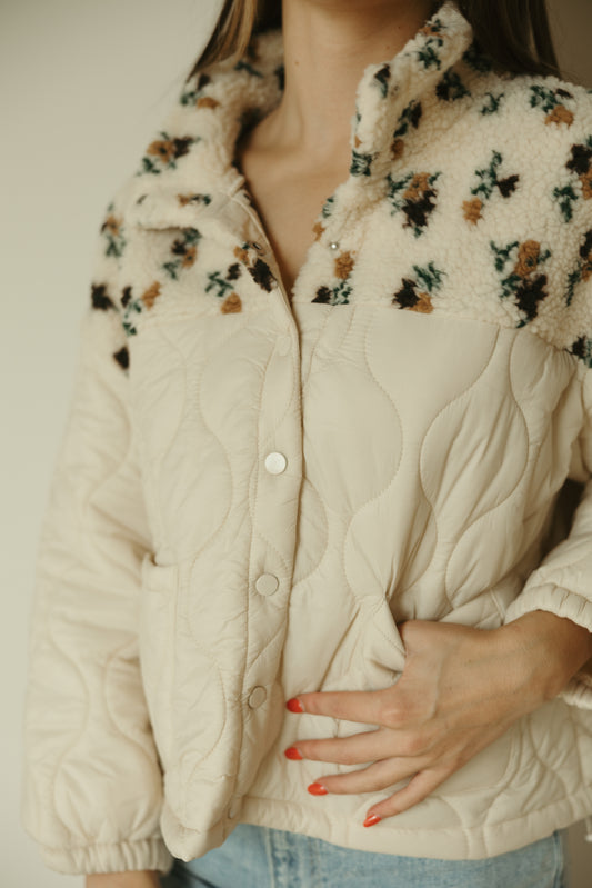 Khaki Floral Quilted Fleece Jacket
