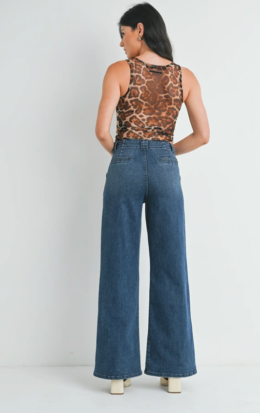 Patch Pocket Wide Leg Flare Jeans