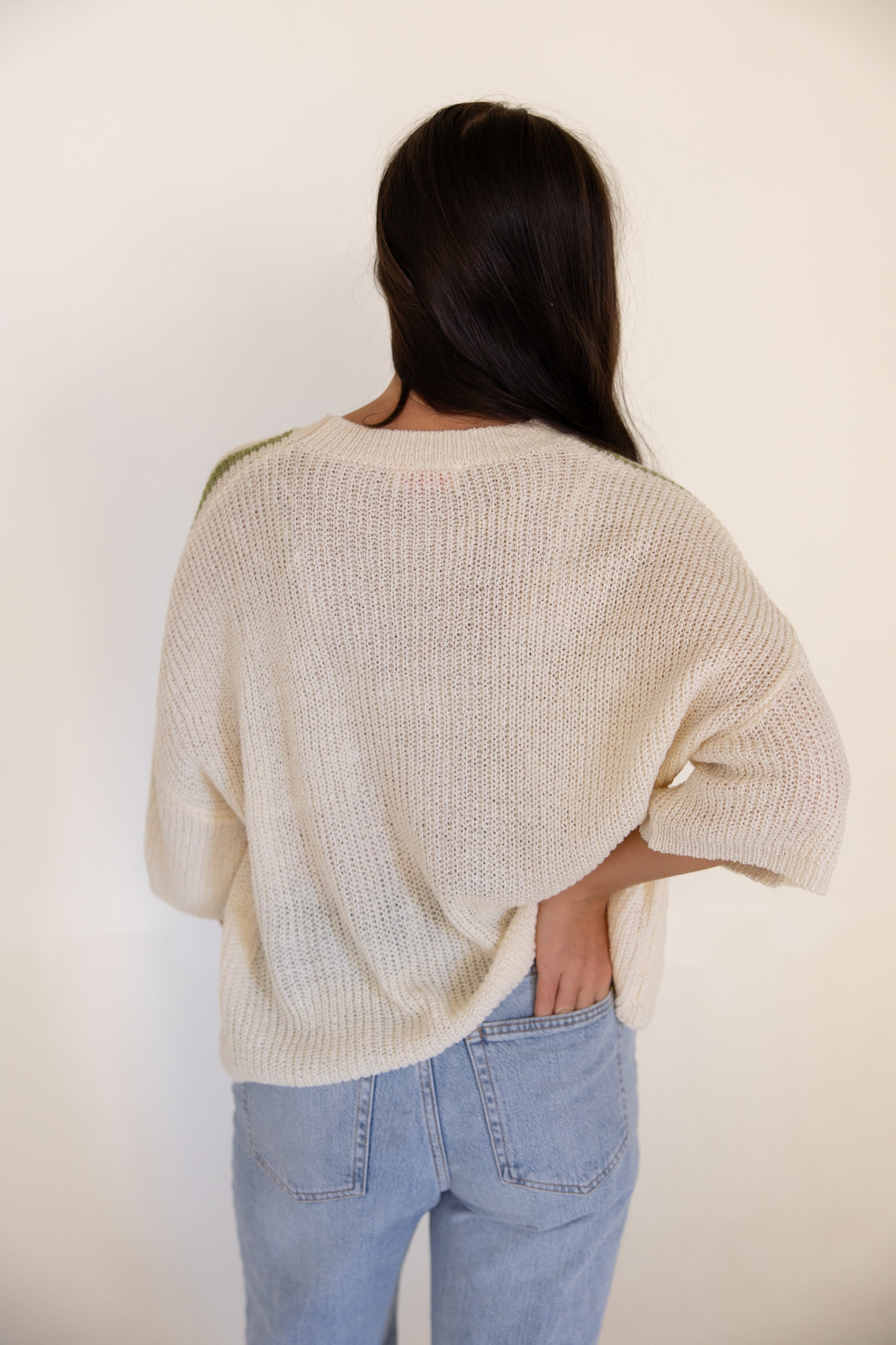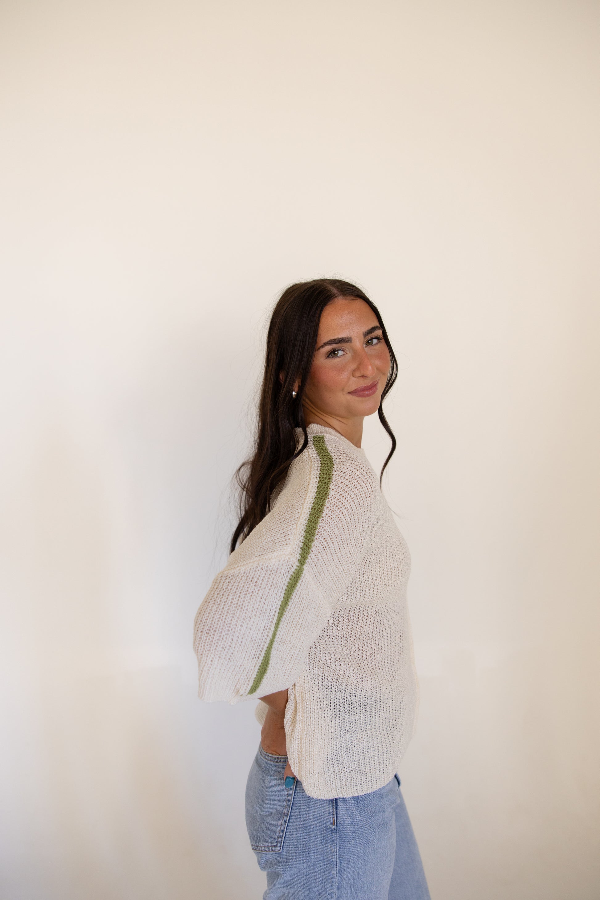 White w/Green Stripe Knit Sweater